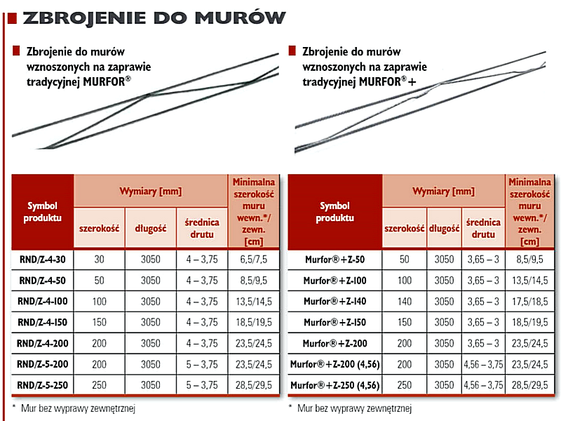 Zbrojenie Murfor® RND/Z do murów wznoszonych na zaprawie tradycyjnej