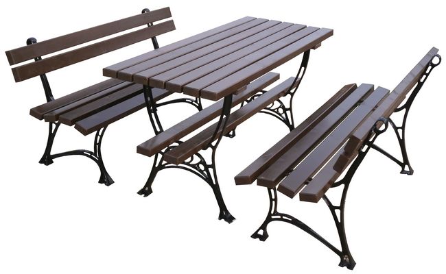 Zestawy mebli ogrodowych żeliwnych występują w 2 wymiarach: 150 cm i 180 cm