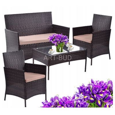 Ekskluzywny zestaw mebli technorattanowych, łączący w sobie doskonałą funkcjonalność z nowoczesnym designem. Nowoczesne i łatwe w utrzymaniu meble ogrodowe z wytrzymałego syntetycznego technorattanu zapewnia stabilność i przyczynia się do znacznego zwiększenia komfortu siedzenia. Dzięki odporności na promienie UV i zmiany klimatyczne może być pozostawiany na zewnątrz, a łatwość czyszczenia technorattanu sprawia, że małym nakładem środków i czasu meble ogrodowe będą cały czas lśniły jak nowe. Jego mocne, stalowe elementy są niezwykle trwałe. Zestaw jest modułowy i lekki, można go więc swobodnie przestawiać i dopasować do dowolnego otoczenia. Grube poduszki i doskonale wyprofilowane fotele gwarantują wygodę użytkowania. Komplet mebli MOKKA składa się ze stołu, sofy dwuosobowej i dwóch wygodnych foteli. W skład zestawu wchodzą również, wygodne poduszki i szkło pokrywające stół