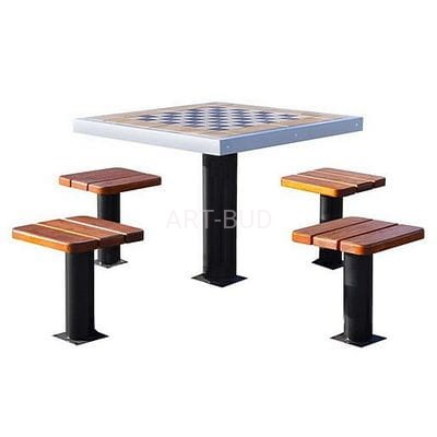Zestaw stalowo drewniany składający się ze stołu i czterech siedzisk. Siedziska wykończone drewnem impregnowanym i malowanym, natomiast stół z blatem stalowym z planszą laminowaną. Zestaw dedykowany do kompozycji plenerowych na obszarach rekreacyjno wypoczynkowych, parkach, pasażach, uzdrowiskach, ośrodkach wypoczynkowych. Istnieje możliwość wyboru koloru stali oraz desek. Dokonując wyboru, wybrane kolory proszę podać w informacji do zamówienia.