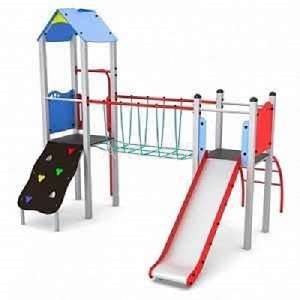 Stalowa konstrukcja czyni plac zabaw wysoce wytrzymałym i co najważniejsze bezpiecznym dla ich użytkowników. Rama stalowa ocynkowana, malowana proszkowo oraz zjeżdżalnia wykonana ze stali nierdzewnej są gwarantem wieloletności oraz odporności na zmieniające się warunki atmosferyczne. Ponadto do zwiększenia bezpieczeństwa przyczynia się antypoślizgowa i wodoodporna płyta podłogowa.