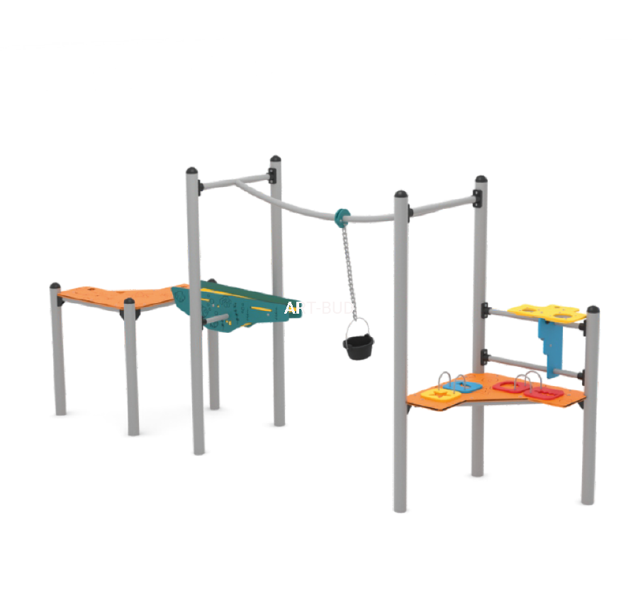 Urządzenie zostało wykonane z rur stalowych Ø76,1 mm oraz profili stalowych o różnej średnicy, zabezpieczonych podkładem cynkowym i malowaniem proszkowym, co chroni konstrukcję przed korozją i działaniem czynników atmosferycznych.