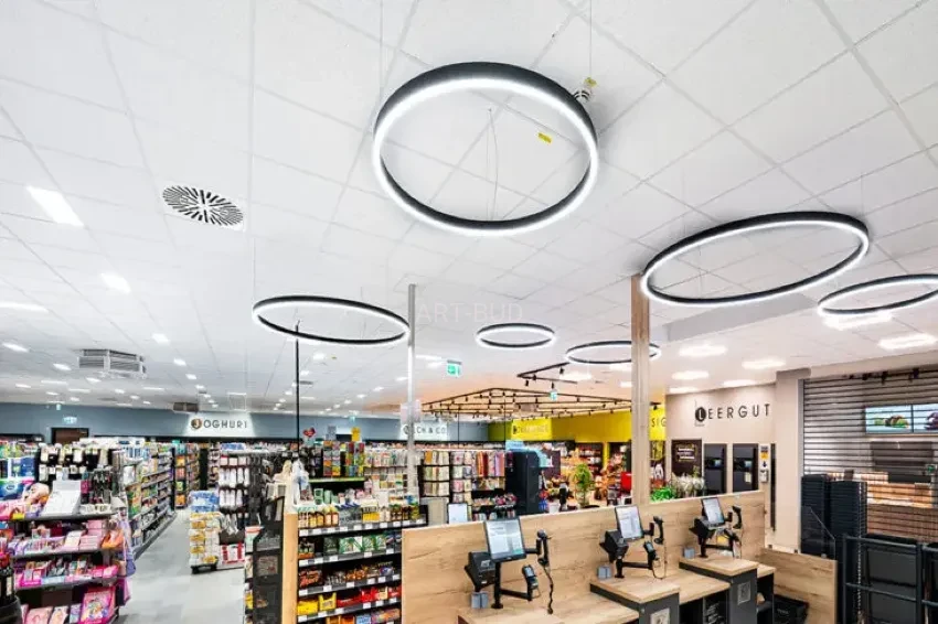 Delikatna perforacja i stonowany biały kolor sprawiają, że sufit Sternbild harmonijnie wpisuje się w różne typy wnętrz od nowoczesnych open space’ów po przestrzenie handlowe czy edukacyjne. - Odporność na wilgoć i wydajność materiału