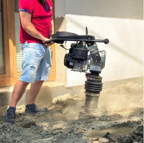 -Na mokrej glebie ubijak może osiągać mniejszą efektywność zagęszczania, a powierzchnia może się lekko kleić do stopy wibracyjnej. Zaleca się krótsze cykle pracy i lekkie zwilżenie stopy wodą, aby uniknąć przyklejania się materiału.