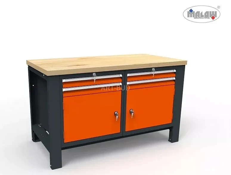 - stół warsztatowy z 4 szufladami i 2 szafkami
