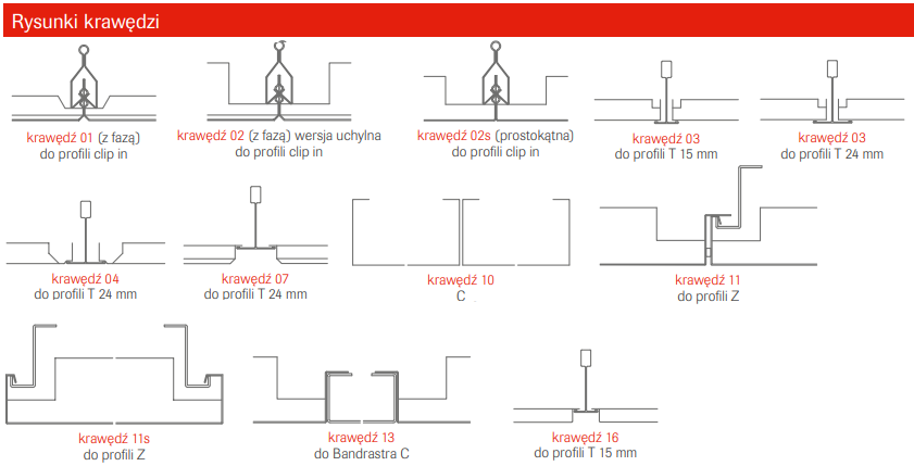 - Podana cena dotyczy wyłącznie kasetonów niezbędnych do wykonania 1 m² sufitu z krawędzią 03, przeznaczoną do systemu S33.