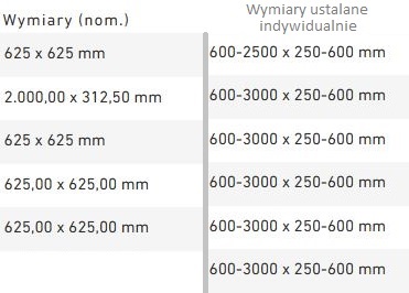 - Dostępne wymiary: (indywidualna wycena)