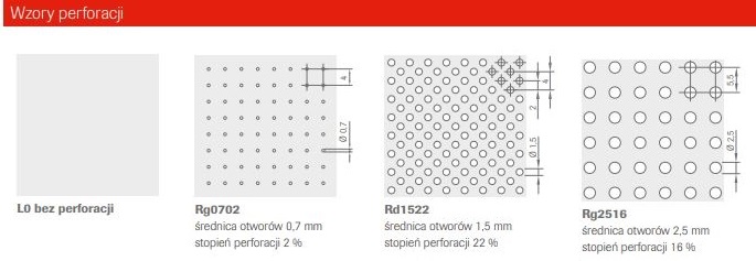 - Dostępne modele perforacji: