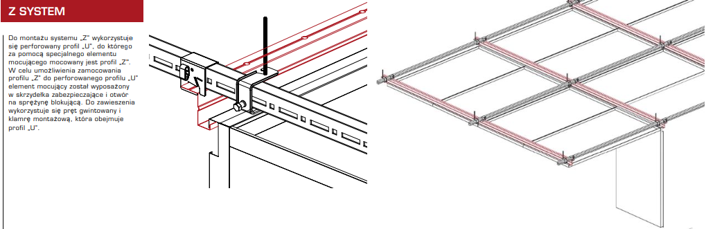 Sufit kasetonowy metalowy Z-System podwieszany