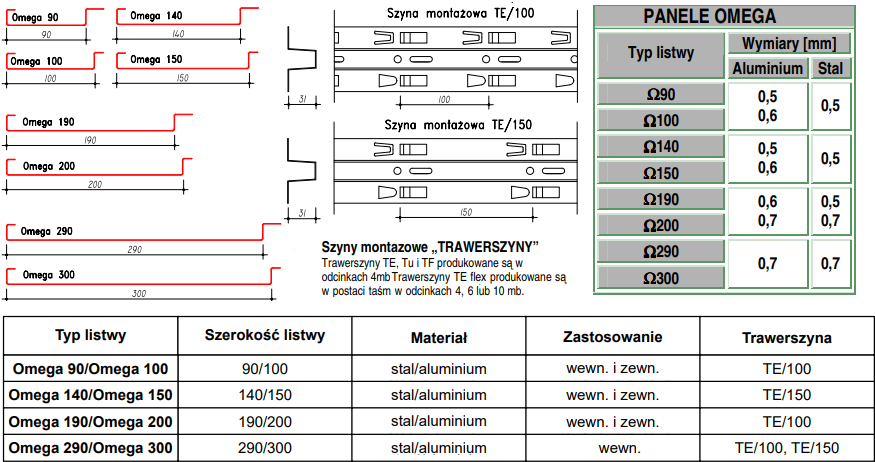 - Listwy dostępne w kolorach: biały, czarny oraz na zamówienie dowolny z palety RAL; listwy stalowe w wykończeniu Poliester Standard.