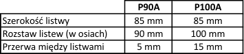 Przykładowe zestawienie wariantów typu P90A oraz P100A