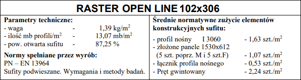 Sufit metalowy rastrowy Open Line 102x306 mm