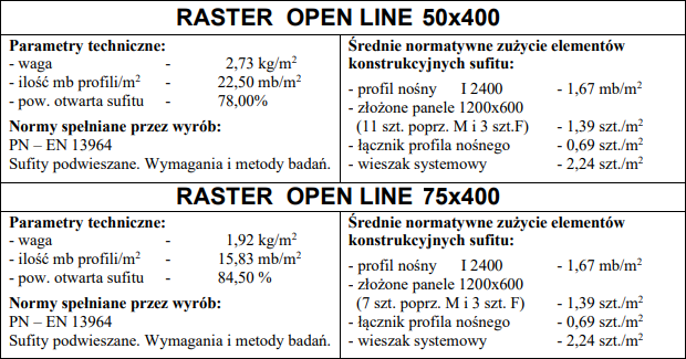 Sufit metalowy rastrowy Open Line 50‑86×400 mm