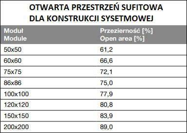 - Dostępne wymiary oczek rastra: 50×50, 60×60, 75×75, 86×86, 100×100, 120×120, 150×150, 200×200 mm