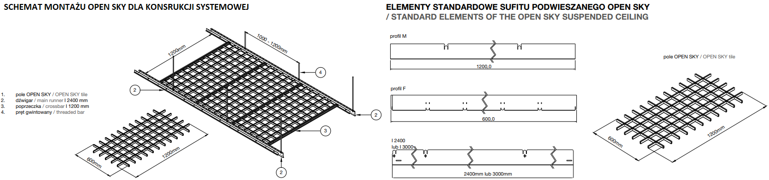 - Standardowy moduł: 1200 × 600 mm