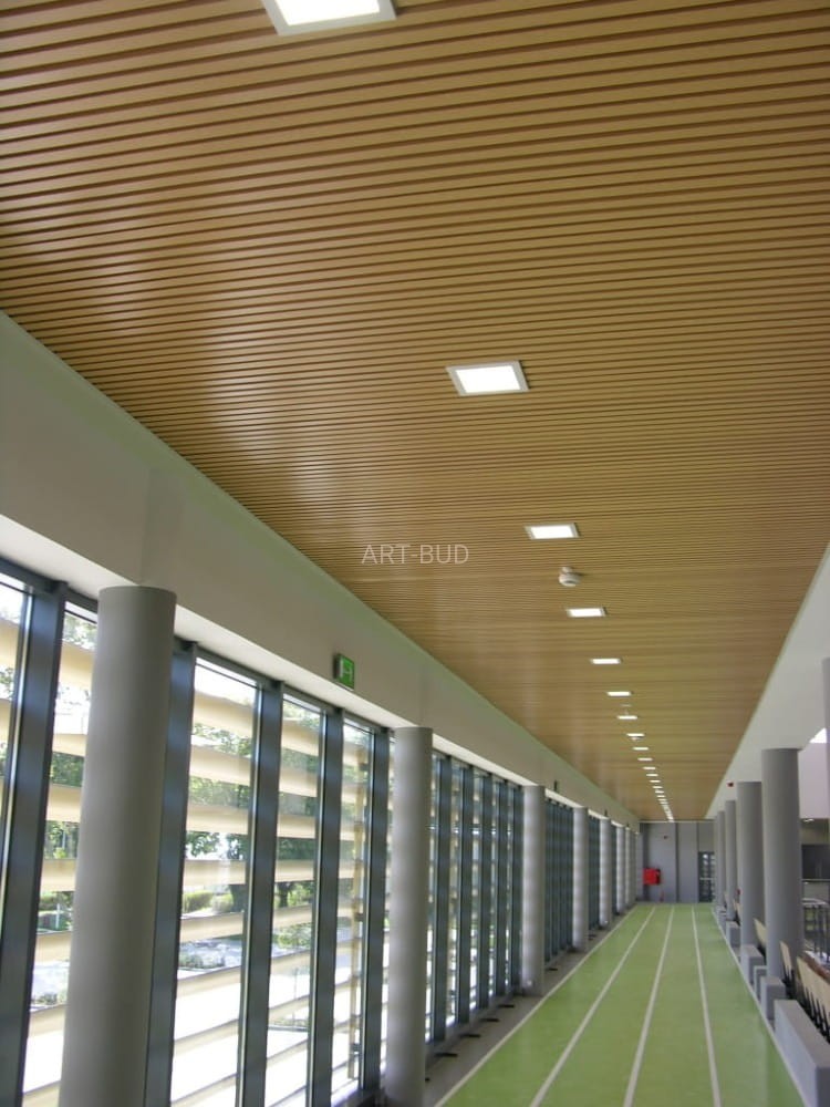 - Spokój i komfort wykończenia — dzięki regularnemu układowi lameli i możliwości precyzyjnego dopasowania montażu, sufit prezentuje się schludnie i profesjonalnie — co pozytywnie wpływa na odbiór całej przestrzeni.