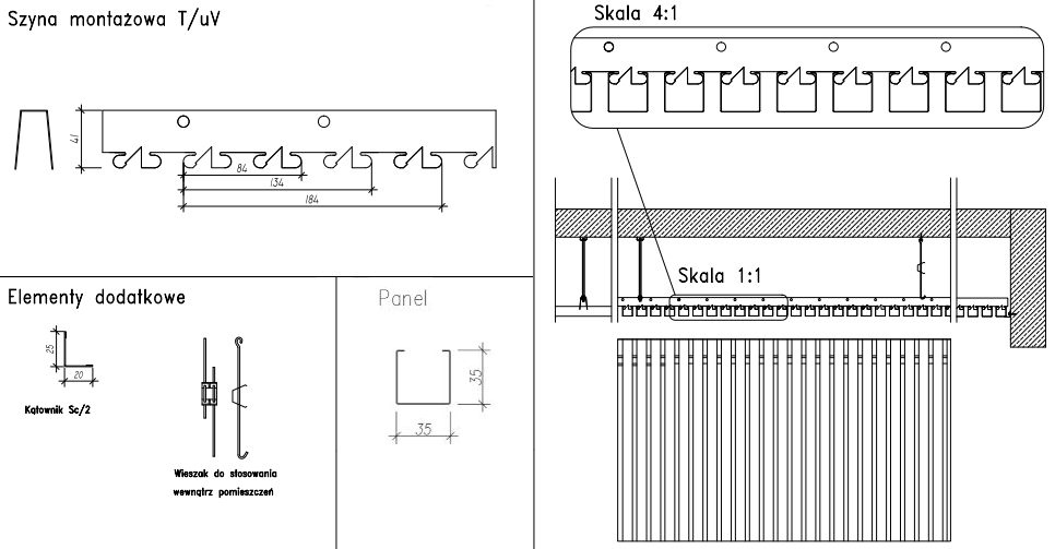 W poniższym linku znajdują się elementy konstrukcyjne przypisane do sufitu listwowego C35: