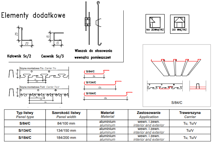 W poniższym linku znajdują się elementy konstrukcyjne przypisane do sufitu listwowego Sc: