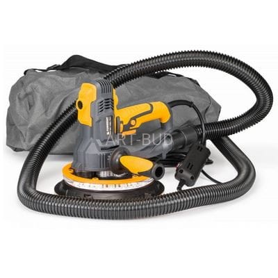 Szlifierka wyposażona jest w system odprowadzania pyłu przystosowany do pracy z odkurzaczem przemysłowym, na wyposażeniu znajduje się worek zbierający pył oraz wąż umożliwiający podłączenie do odkurzacza.
