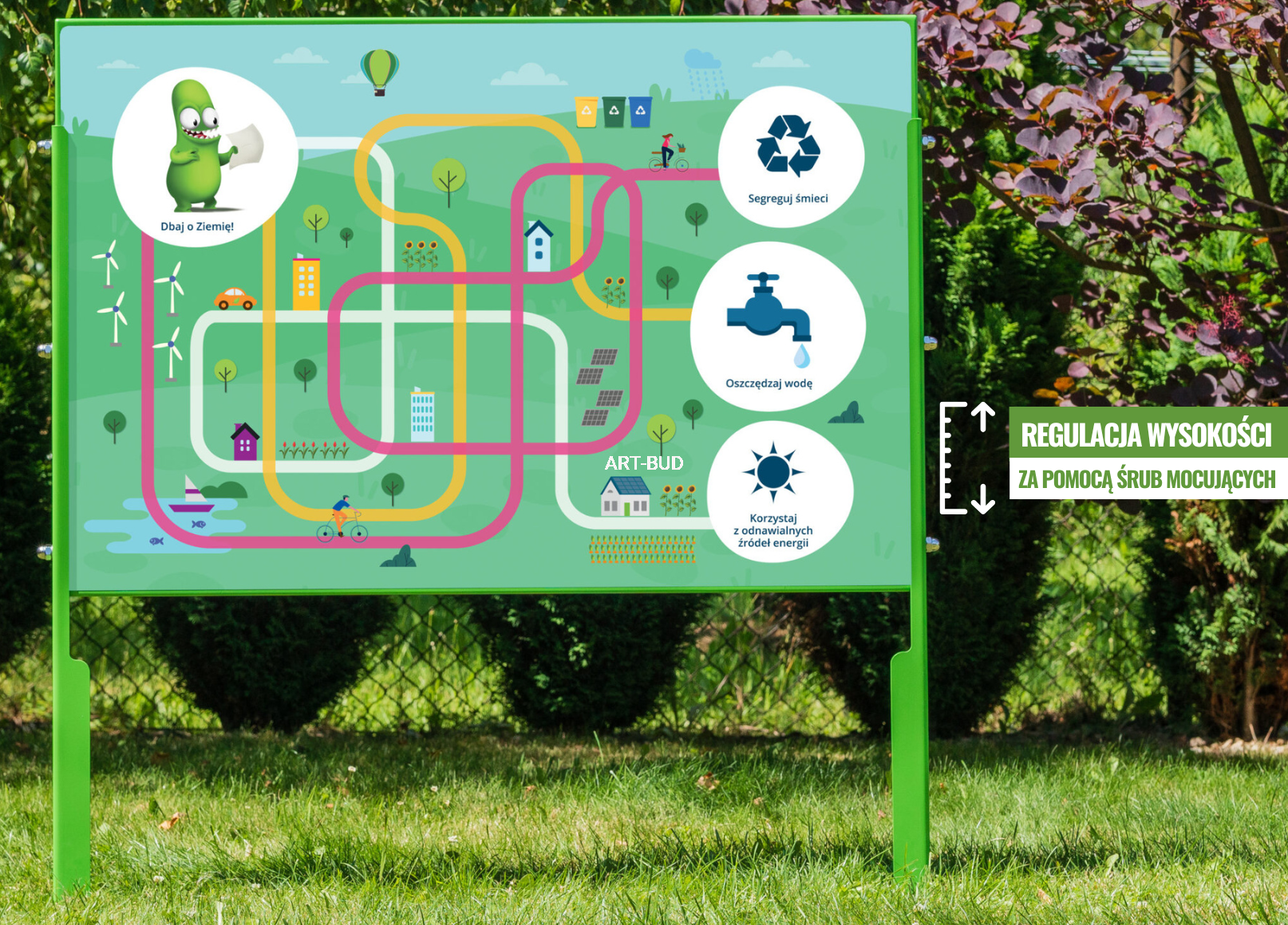 Urządzenie jest bezpieczne, jednostronne, stabilne i zaprojektowane tak, aby mogło być użytkowane przez dzieci w wieku przedszkolnym i szkolnym. Tablica świetnie sprawdzi się na placach zabaw, w strefach rekreacyjnych, przy szkołach, świetlicach, w ogrodach przydomowych oraz w przestrzeniach terapeutycznych.