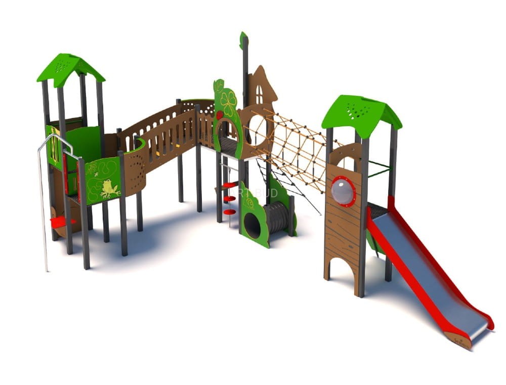 Ten wyjątkowy zestaw to kolorowa kraina odkryć stworzona dla aktywnych dzieci. Leśne grafiki i zielone akcenty tworzą klimat, który naturalnie wtapia się w przestrzeń. Dzięki zjeżdżalniom, tunelom i ściankom wspinaczkowym urządzenie wspiera rozwój fizyczny, integrację oraz kreatywną zabawę w grupie rówieśników.