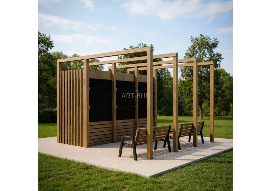 Tężnia solankowa Modulo to nowoczesna, miejska konstrukcja rekreacyjno-zdrowotna przeznaczona do parków, stref wypoczynkowych, ogrodów miejskich oraz przestrzeni publicznych. Jej działanie opiera się na naturalnym procesie odparowywania solanki, który wzbogaca powietrze w mikroelementy korzystnie wpływające na drogi oddechowe. Solidna drewniana konstrukcja oraz przemyślana instalacja hydrauliczna zapewniają trwałość, bezpieczeństwo i bezobsługowe użytkowanie.