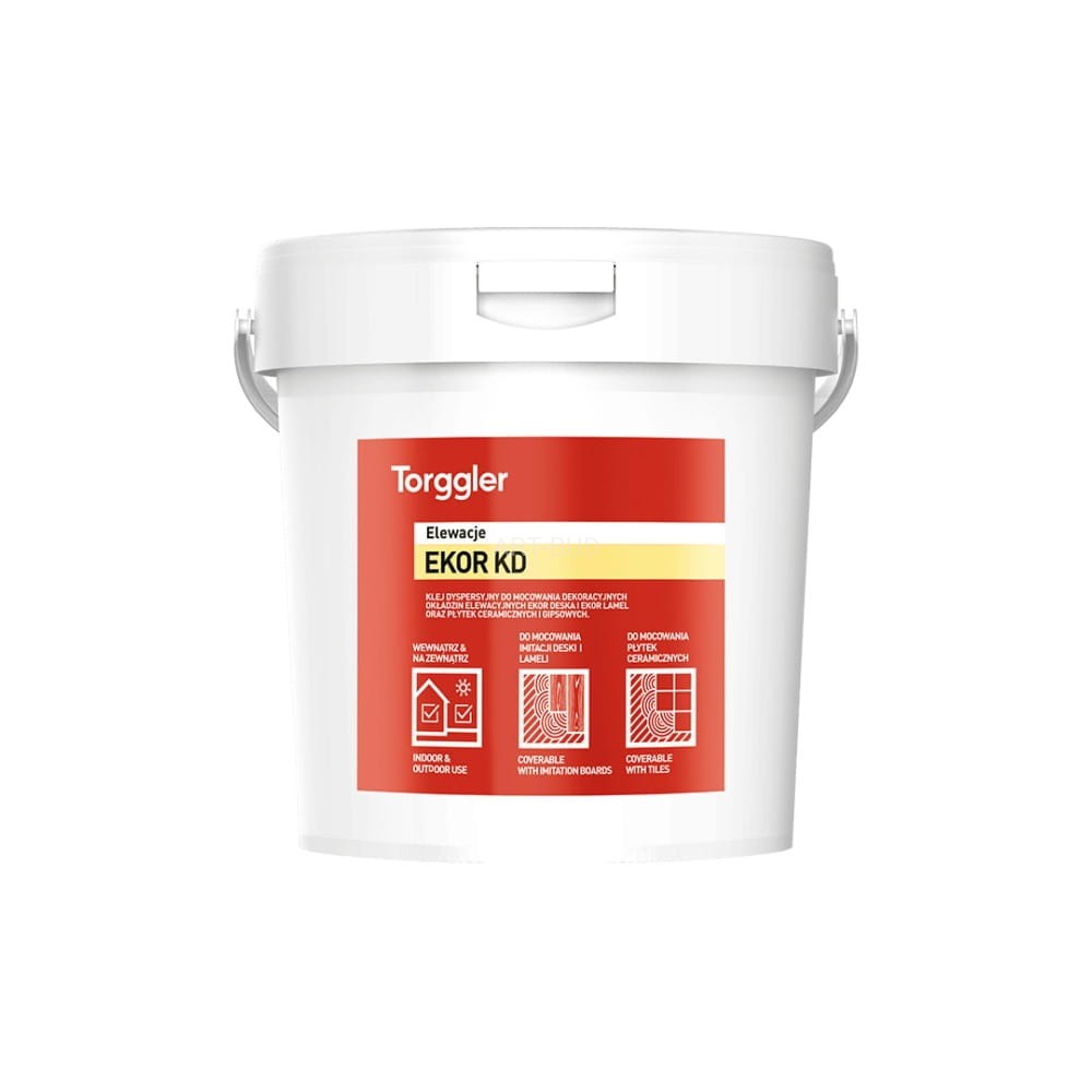 Torggler EKOR KD to gotowy do użycia biały akrylowy klej, przeznaczony do przyklejania płytek ceramicznych, kamienia naturalnego, gipsowych oraz dekoracyjnych okładzin elewacyjnych. Dzięki formule na bazie dyspersji akrylowej klej jest elastyczny, zapewnia wysoką przyczepność oraz nadaje się do stosowania wewnątrz i na zewnątrz pomieszczeń, także na trudnych i odkształcalnych podłożach budowlanych.