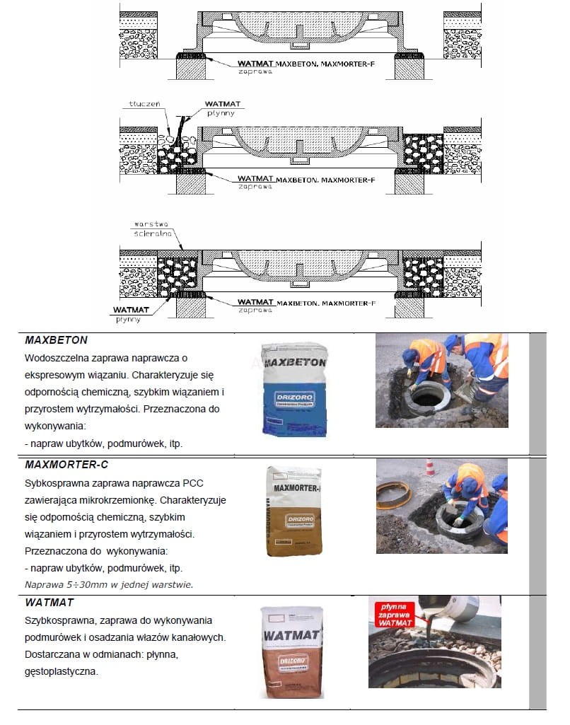- • Osadzanie i kotwienie elementów infrastruktury wodno-kanalizacyjnej