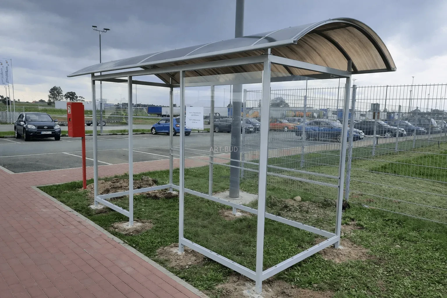 Konstrukcja: stalowa malowana RAL. poliwęglan. szkło