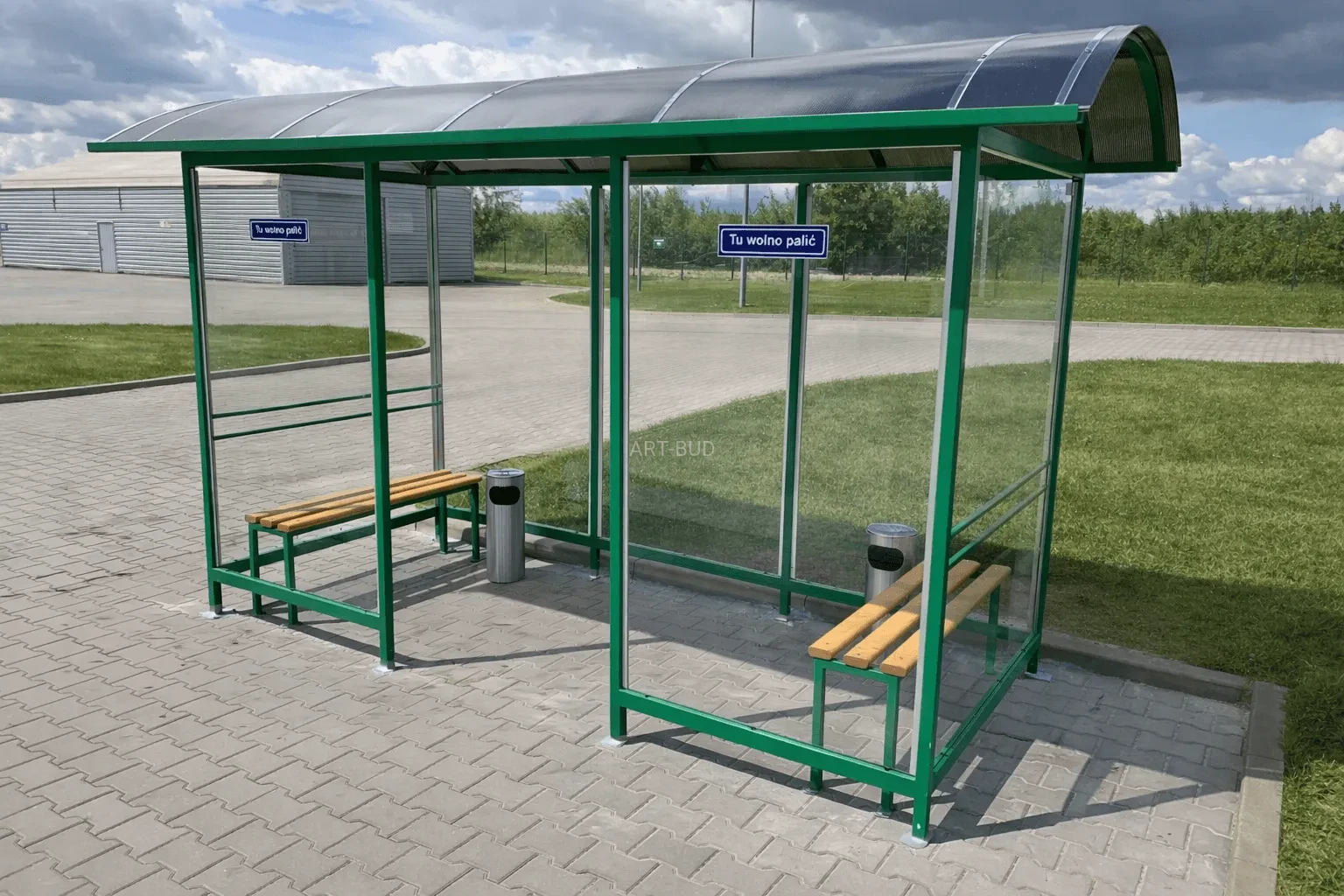 Wiata została zaprojektowana jako trwała i bezpieczna palarnia zewnętrzna, spełniająca wymagania intensywnego użytkowania.