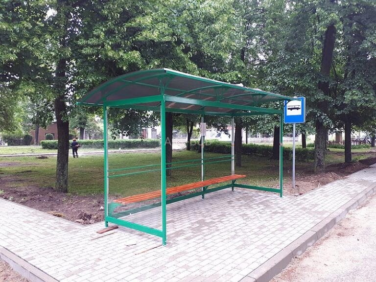 Wiatę wykonano z odpornego na korozję aluminium malowanego proszkowo, co zapewnia trwałość niezależnie od warunków pogodowych. Dobrze sprawdza się w ciężkich warunkach miejskich.