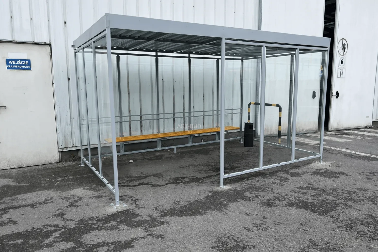 Wiata OMEGA 5 to profesjonalna palarnia zewnętrzna zaprojektowana z myślą o firmach, zakładach produkcyjnych, biurach oraz przestrzeniach publicznych. Konstrukcja pozwala w łatwy sposób stworzyć funkcjonalną strefę dla palaczy, która porządkuje przestrzeń wokół budynku i zwiększa komfort użytkowników.