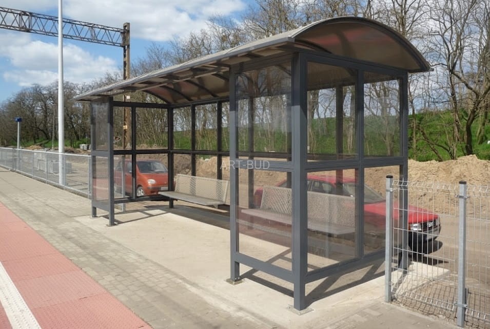 - Skuteczna ochrona przed warunkami atmosferycznymi: dach z poliwęglanu komorowego chroni pasażerów przed deszczem, śniegiem i wiatrem, jednocześnie umożliwiając naturalne doświetlenie przestrzeni.
