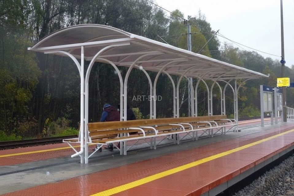 To rozbudowana wiata peronowa przeznaczona do miejsc o większym natężeniu ruchu, gdzie kluczowe znaczenie ma powierzchnia zadaszenia i organizacja przestrzeni. Prosta forma konstrukcji pozwala na łatwe wkomponowanie wiaty w istniejącą infrastrukturę peronową, bez dominowania otoczenia.