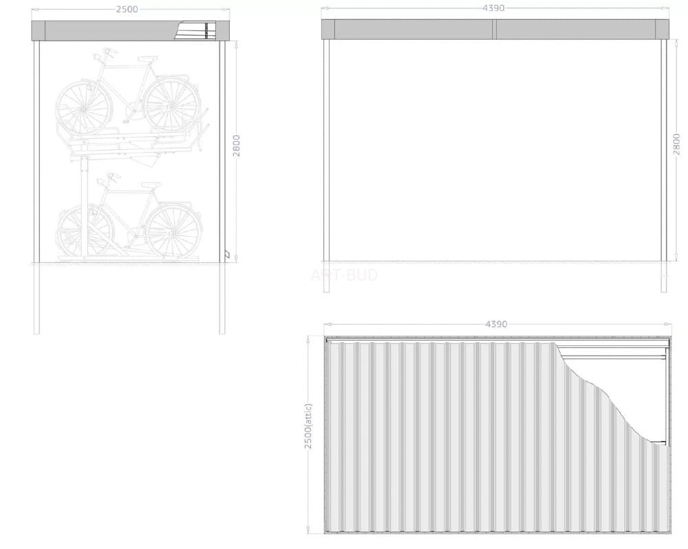 Wiaty z serii ARB_2T_S przeznaczone są do montażu stojaków piętrowych jednostronnych i dostępne są w dwóch wariantach wymiarowych.