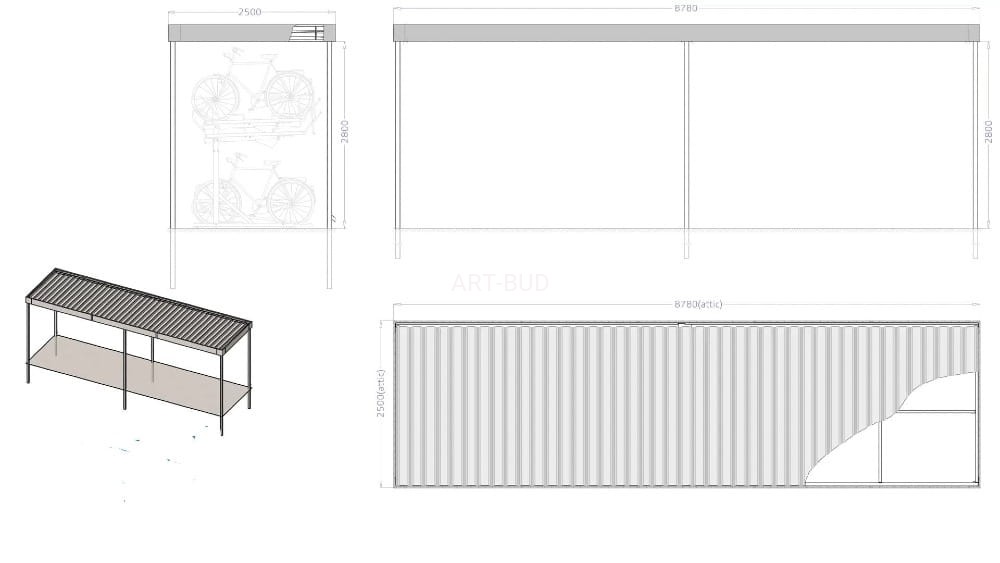 Wiata na rowery ARB-2TS na stojaki piętrowe jednostronne