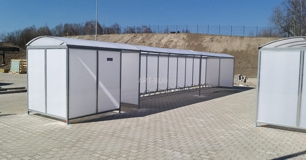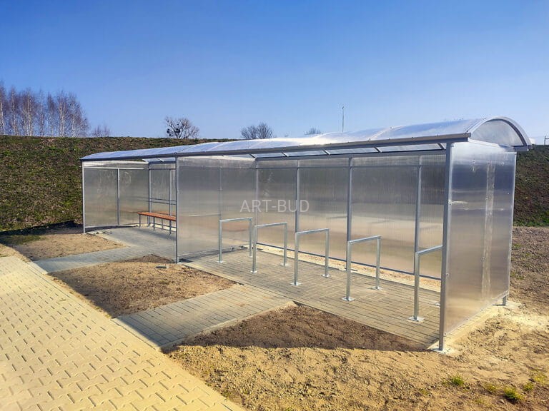 Nowoczesna konstrukcja przeznaczona do zadaszonego parkowania rowerów w przestrzeniach publicznych oraz prywatnych. Solidne wykonanie ze stali oraz prosta, estetyczna forma sprawiają, że obiekt dobrze wpisuje się w otoczenie biurowców, zakładów pracy, szkół, osiedli mieszkaniowych i obiektów użyteczności publicznej. Zadaszenie chroni rowery przed niekorzystnymi warunkami atmosferycznymi.