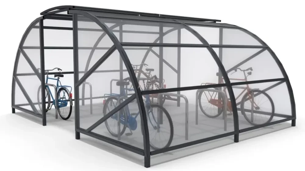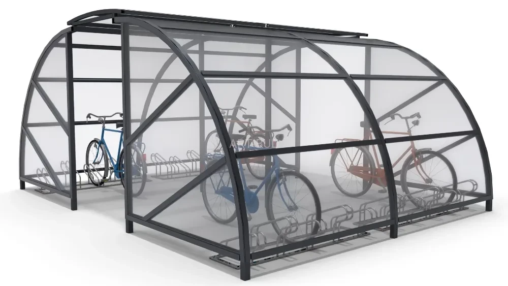 Wiata rowerowa GRJ-D to funkcjonalne rozwiązanie dwustronne, które umożliwia parkowanie rowerów po obu stronach konstrukcji. Dzięki temu model ten pozwala efektywnie wykorzystać przestrzeń i zwiększyć liczbę stanowisk w jednej wiacie.