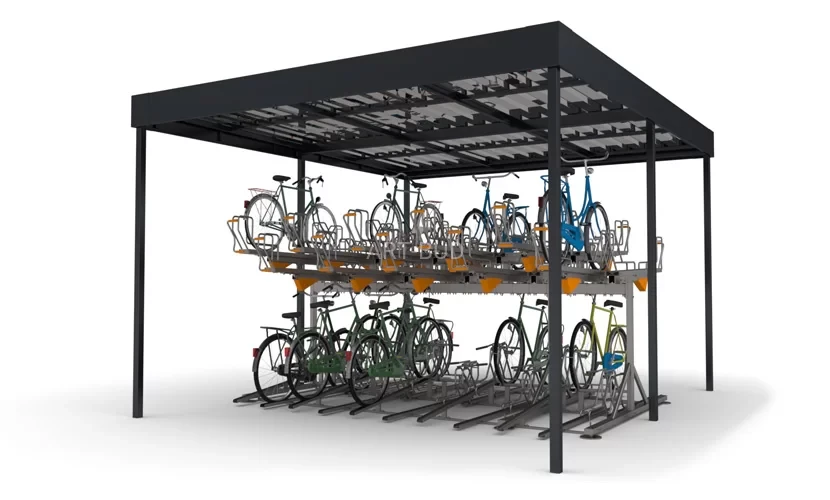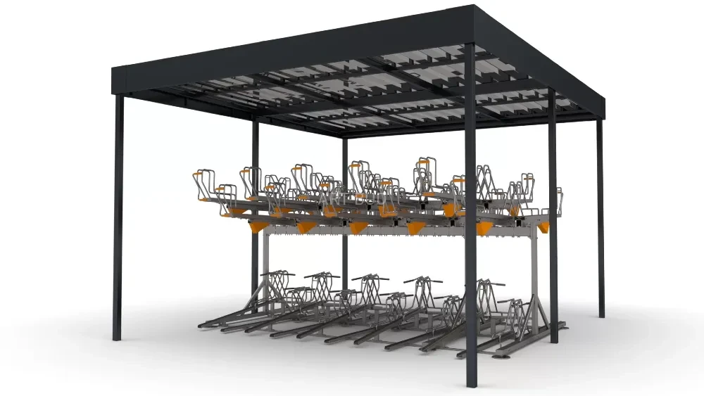 Wiata na rowery ARB-2T-D na stojaki piętrowe dwustronne