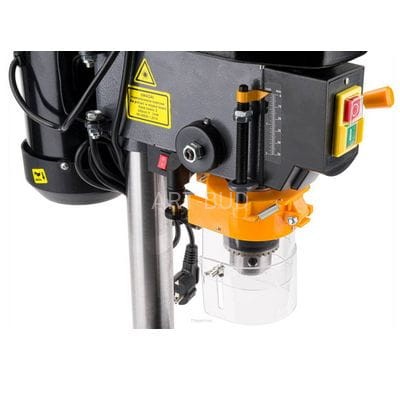 Wiertarka wyposażona w dodatkowe zabezpieczenie przed otwarciem osłony w czasie pracy i dodatkową ochronę oczu, zapewniającą wysoki komfort pracy. Dodatkowo posiada stabilny, mocny i regulowany stół roboczy oraz imadło maszynowe. Produkt wykonany jest z trwałych i niezawodnych materiałów najwyższej jakości.