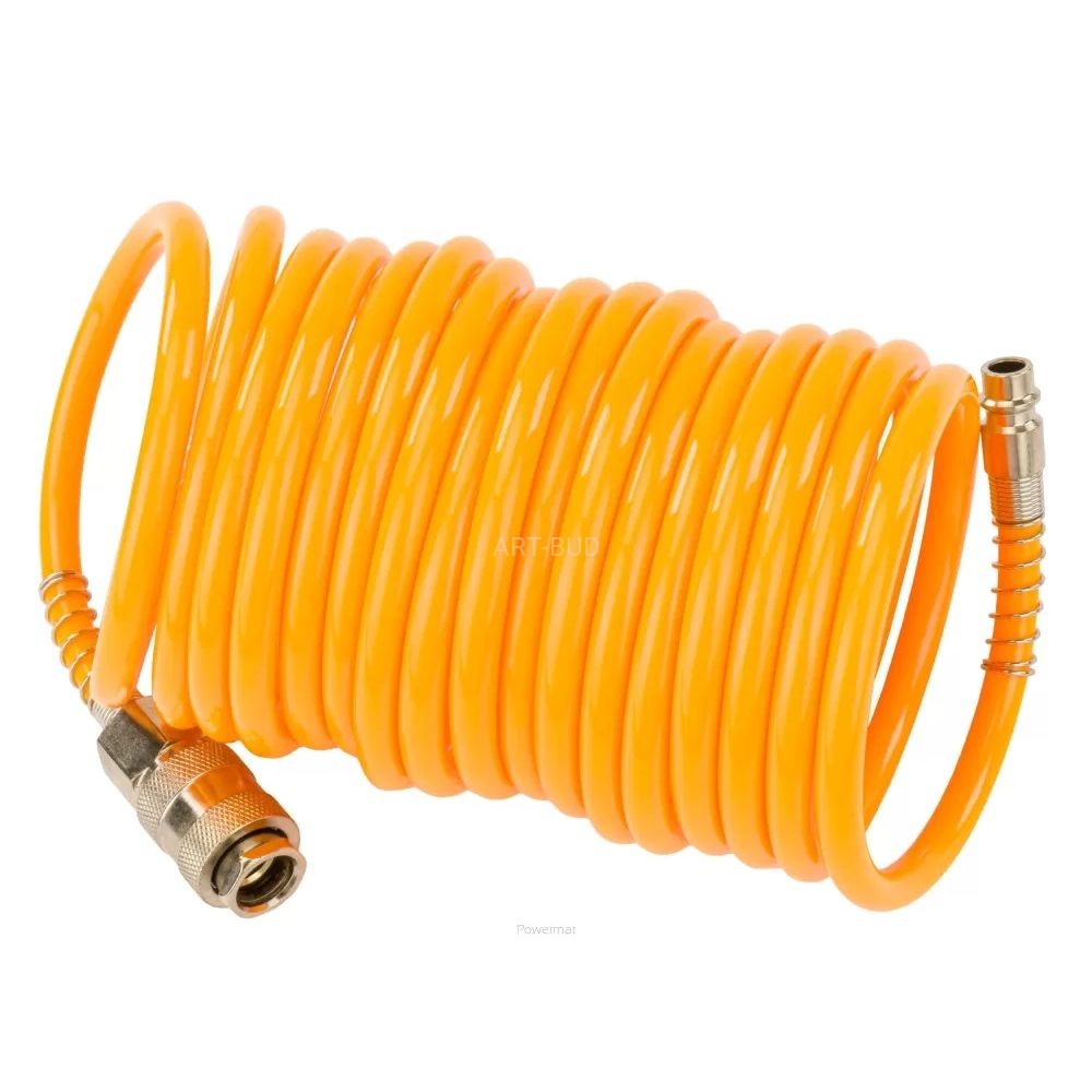 Spiralny wąż pneumatyczny o długości 5 metrów, idealny do podłączania narzędzi pneumatycznych, pistoletów natryskowych oraz innych urządzeń pneumatycznych, a także do przedłużania istniejących węży pneumatycznych.