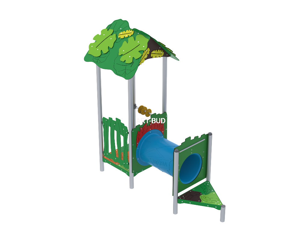 Zestaw wyposażony w tunel oraz elementy integracyjne zachęca dzieci do eksploracji, przechodzenia i aktywności fizycznej. Dzięki kompaktowym wymiarom doskonale sprawdzi się zarówno w przestrzeniach publicznych, jak i mniejszych strefach rekreacyjnych.